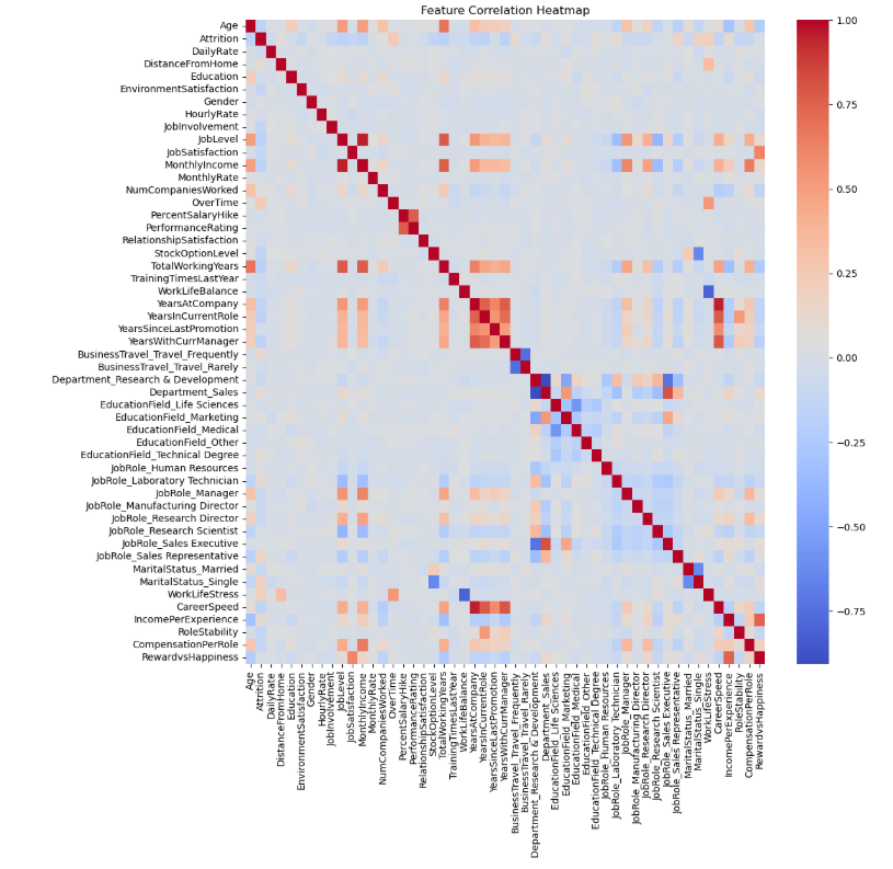 Within Sales roles, attrition risk becomes more concentrated. Overtime-related attrition increases substantially, and high work–life stress is tightly associated with employee exits, indicating that elevated attrition in Sales is driven primarily by workload conditions rather than role identity alone.