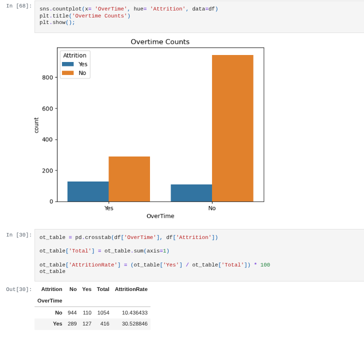 Across all dashboard views, filtering changes the scale of attrition but not its drivers. Overtime and work–life stress consistently emerge as the strongest contributors, while department, role, and demographic breakdowns provide contextual detail, (like gender influencing attrition magnitude within specific roles) rather than independent explanations. These findings align with the statistical and machine learning results, reinforcing that attrition in this dataset is primarily driven by workload intensity, work–life stress, and compensation relative to experience.